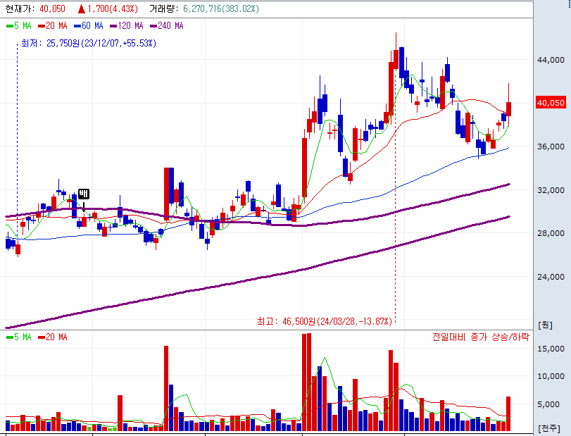 - 종가 기준 60일선인 36,000원을 지지하지 못한다면 손절
