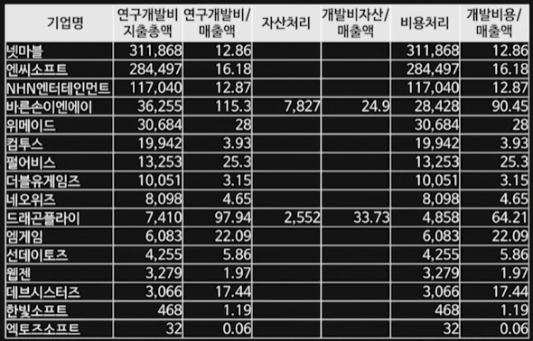 ๋ ๋ฒ์งธ๋ก ์ค์ํ ์ ์ ์ฐ๊ตฌ๊ฐ๋ฐ๋น์ ์ด์ก๊ณผ ๋งค์ถ์ก ๋๋น ์ฐ๊ตฌ๊ฐ๋ฐ๋น์ฉ์ ๋๋ค. ๋งค์ถ ๋๋น ๊ฒ์ ๊ฐ๋ฐ์ ํฌ์๋ฅผ ์ผ๋ง๋ ํ๊ณ ์์ผ๋ฉฐ, ๊ทธ ๊ธ์ก์ ํฌ๊ธฐ๋ฅผ ๋ณธ๋ค๋ฉด ํ์ฌ๊ฐ ๋ณธ์ ์ ์ผ๋ง๋ ์ถฉ์คํ๊ฒ ์ํ๊ณ ์๋์ง๋ฅผ ์ ์ ์์ต๋๋ค.