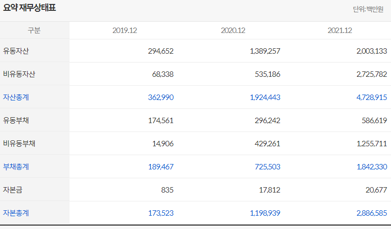 ์ฐ์ ์ฌ๋ฌด์ํํ๋ฅผ ์ดํด๋ณด๊ฒ ์ต๋๋ค. ํ์ด๋ธ๋ผ๋ ํ์ฌ๋ ์ํฐ์ ๊ณ์ด๊ธฐ ๋๋ฌธ์ ๋น์ ๋์์ฐ ์ค ๋ฌดํ ์์ฐ์ ํฌ๊ธฐ๊ฐ ์ค์ํฉ๋๋ค. ์๋ ํ๋ฅผ ๋ณด์๋ฉด ๋น์ ๋ ์์ฐ์ด ํฐ ํญ์ผ๋ก ์ฆ๊ฐ๋ฅผ ํ๊ณ , 2021๋ ์๋ ๋น์ ๋์์ฐ์ด ์ ๋์์ฐ์ ์ญ์ ํ ๊ฒ์ ํ์ธํ ์ ์์ต๋๋ค. BTS๊ฐ ์๋ง ํฐ ์ง๋ถ์ ์ฐจ์ง๋ฅผ ํ ๊ฒ์ผ๋ก ๋ณด์ฌ์ง๋๋ค. ๋ถ์ฑ์ ์๋ณธ ์ด๊ณ ๋ํ ์์ฐ์ ๋น๋กํ์ฌ ๋์ด๋ ๊ฒ์ ํ์ธํ ์ ์์ต๋๋ค.