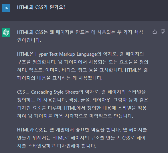 html๊ณผ css๋ ๊ธ์จ, ๊ทธ๋ฆผ, ๊ฐ์ข ๋ฐฐ๋์ ๋ฐฐ๊ฒฝ์ด ํ๋ฉด์ ์ด๋ป๊ฒ ๋ํ๋๋์ง๋ฅผ ์ ์ํ๋ ์ธ์ด์ ๋๋ค. ์น์ฌ์ดํธ ๊ฐ๋ฐ์ ์ํด์๋ ๋ฌด์กฐ๊ฑด ํ์ํ ๋ฌธ์์ ๋๋ค. ์ ๋ชจ๋ฅด์๋ฉด ์ญ์ ChatGPT์ ๋ฌผ์ด๋ณด๋ฉด ๋ฉ๋๋ค ใ ใ