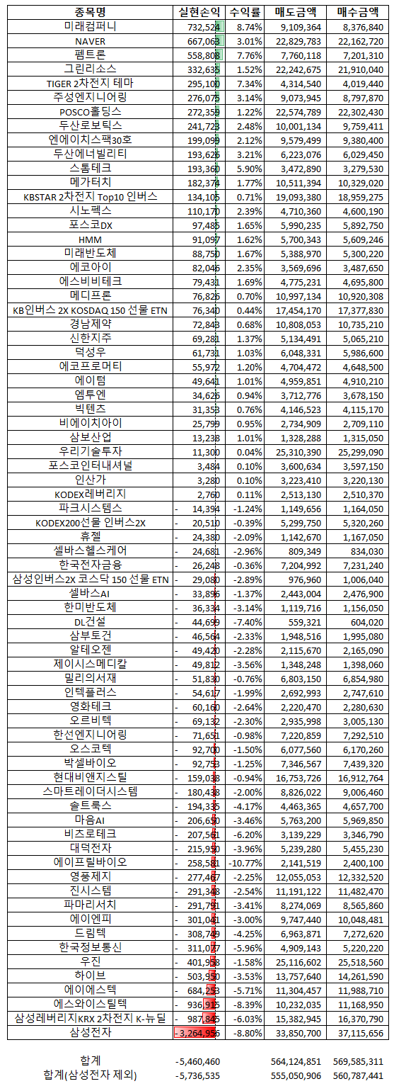 | 8์ | -โฉ2,241,693 | -5.60% | -2.90% | -0.81% |